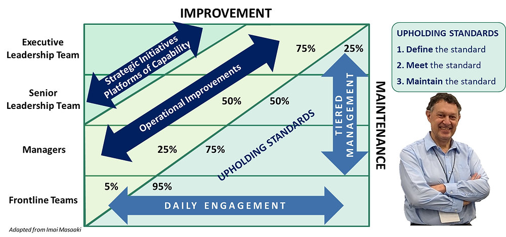 When I have the opportunity, I often share a slide inspired by the work of Masaaki Imai. It depicts a two-path framework: one path for continuous improvement, and another for innovation or breakthrough improvement. Both are necessary, but they must be managed differently.